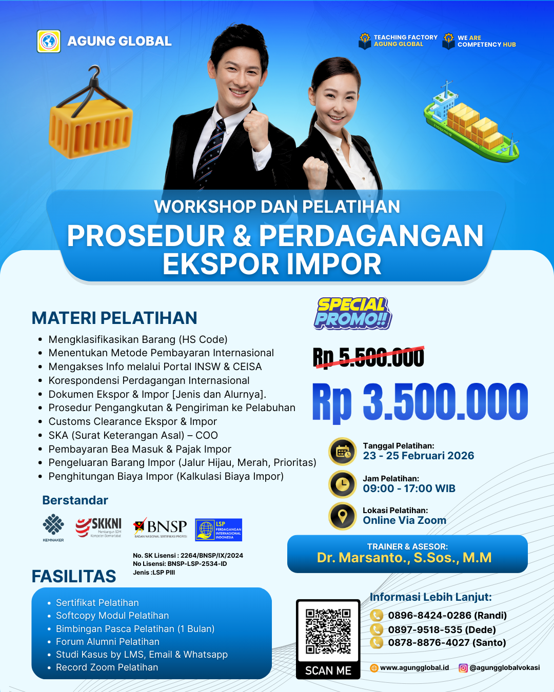 ![[BATCH FEBRUARI 2026] Workshop dan Pelatihan - Prosedur & Perdagangan Ekspor Impor [Include Uji BNSP] 1 [BATCH FEBRUARI 2026] Workshop dan Pelatihan - Prosedur & Perdagangan Ekspor Impor [Include Uji BNSP]](https://agungglobal.id/wp-content/uploads/2025/12/23-25-Februari-2026.png)